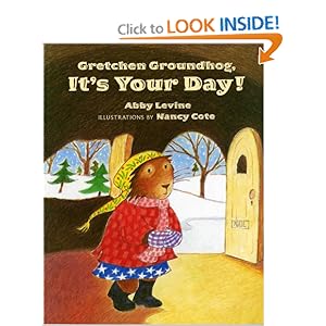 Gretchen Groundhog, It's Your Day!- Gretchen has to follow the family tradition of stepping out to see her shadow on Groundhog's Day, but she's very shy. She gets letters and emails from all over encouraging her to go out. Then she finds a box of notes from all of her family and many of them were afraid too. She decides she will be brave too.