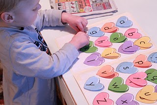 Hands On: As We Grow shared a Valentine themed alphabet matching activity inspired by File Folder Fun.
